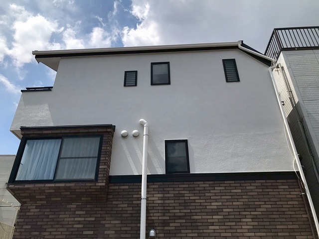 付帯部は、関西ペイントのコスモマイルドシリコンⅡにて塗装いたしました。コスモマイルドシリコンⅡは、従来の強溶剤型シリコン樹脂塗料よりも優れた耐汚染性を持ち、美しい仕上がりです。また、防カビ・防藻性にも優れ長期にわたり美観を維持させる事ができます。