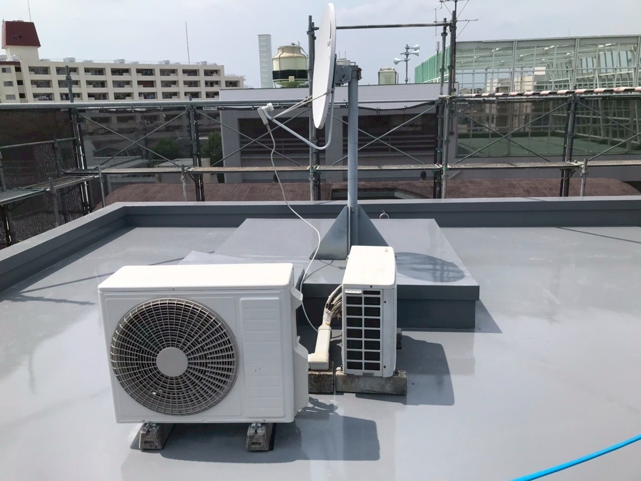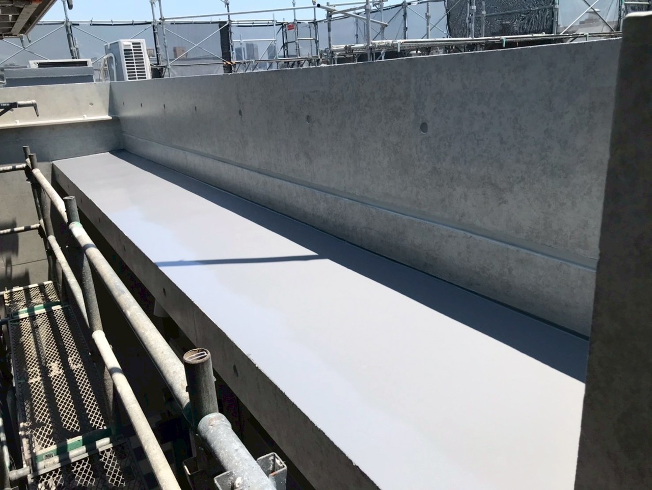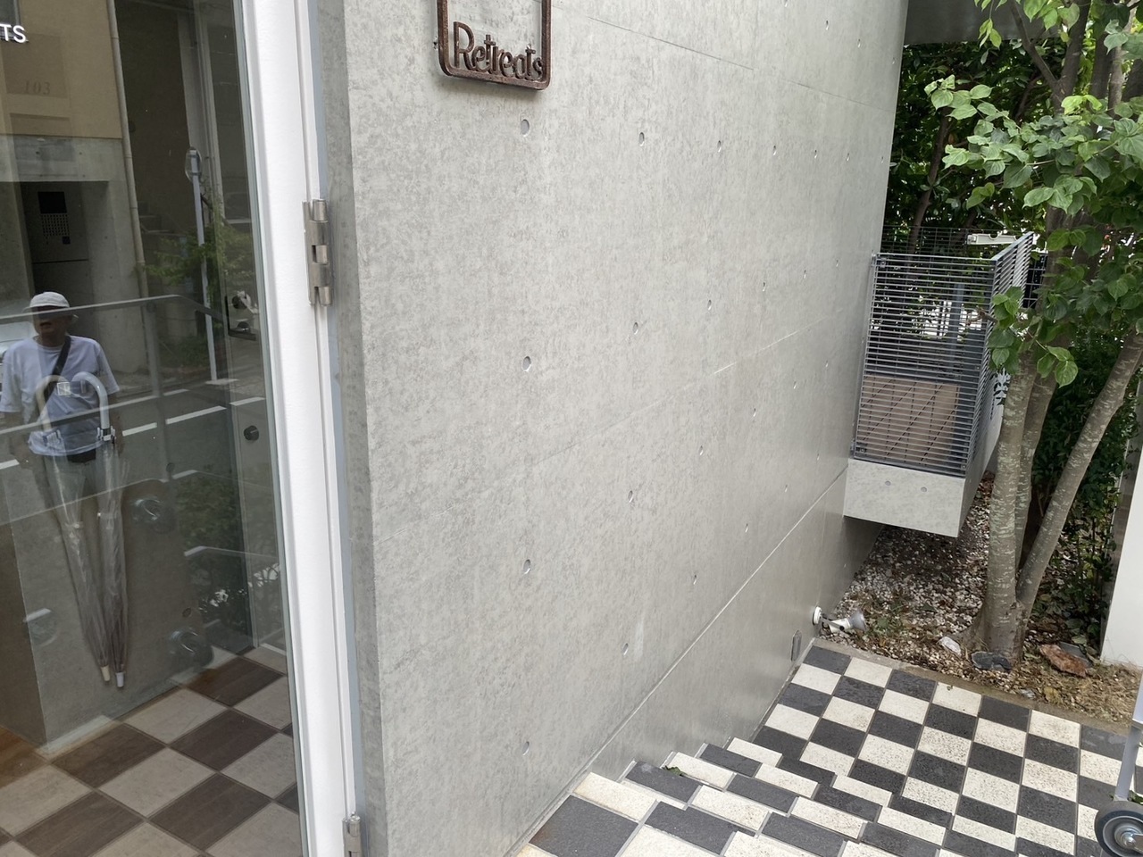 外壁タイル部はセブンケミカル社のセブンSにて塗装いたしました。タイル・ガラスブロック・打ち放しコンクリート、特に意匠性を重要視する建物の内外装に適しています。既存の風合いを変えることが少ない透明な防水仕上げ材です。