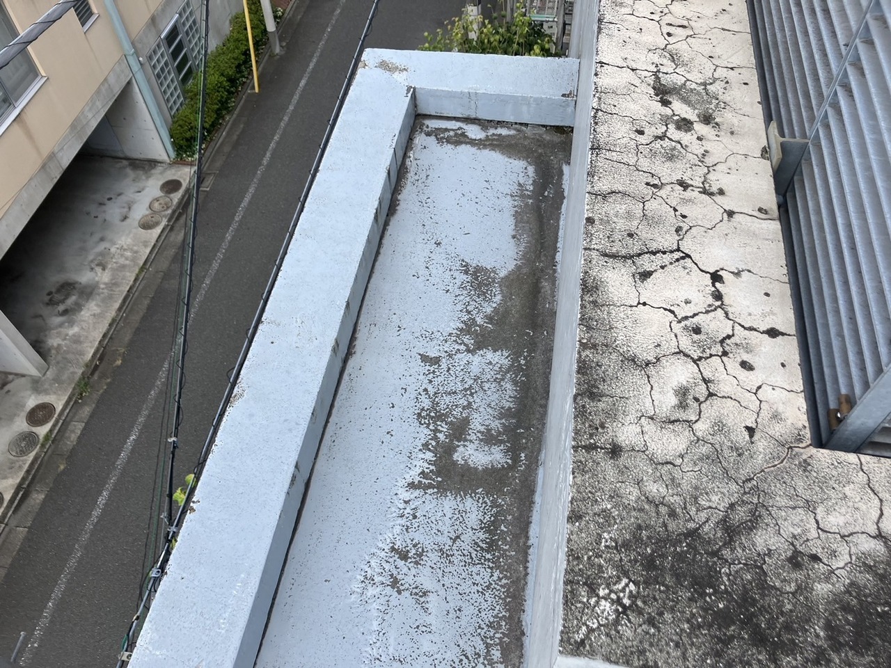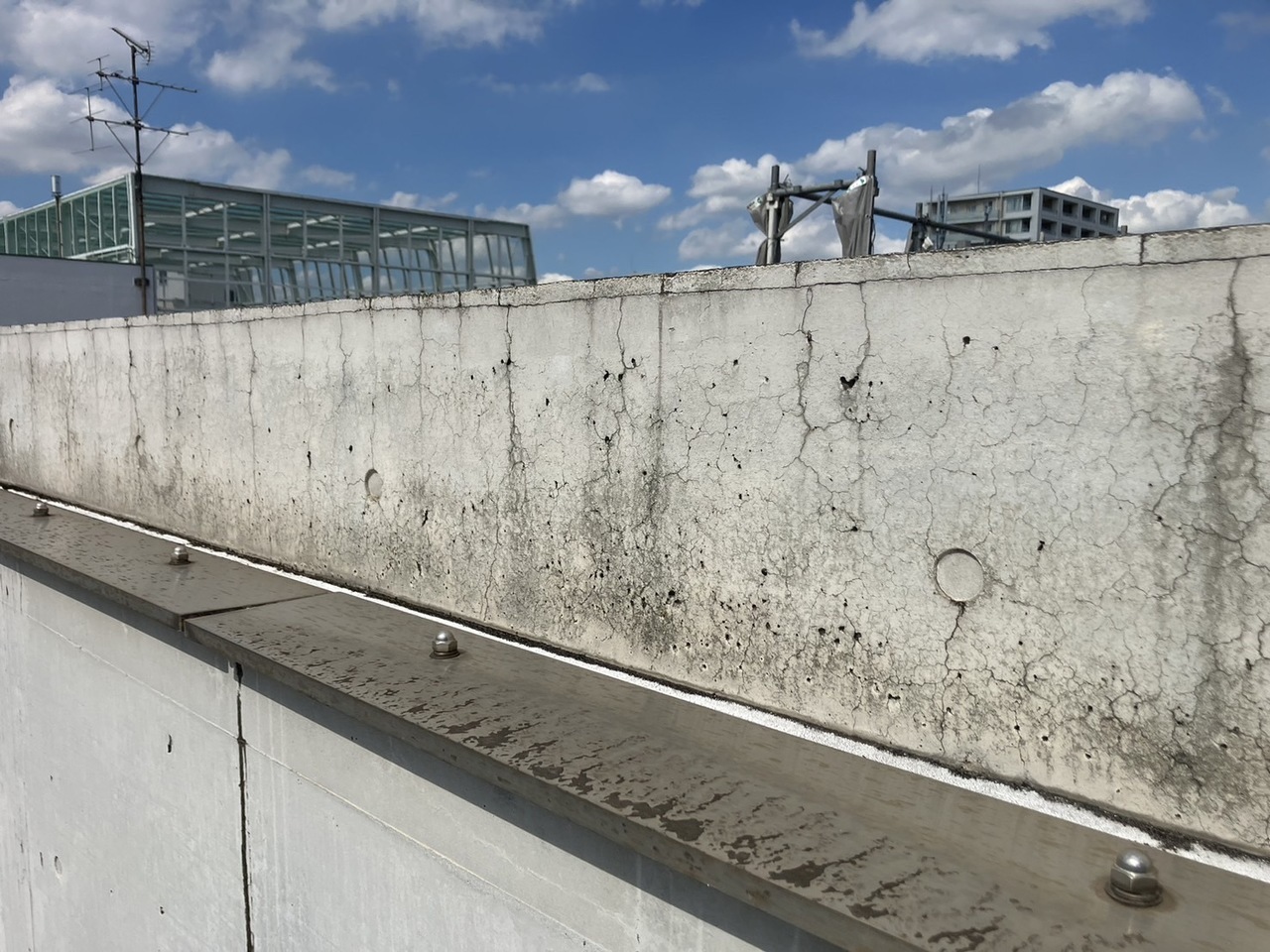 防水:防水層の機能低下の懸念、ひび割れ、雨水の侵入懸念、排水ドレン周囲に土埃・泥などの堆積