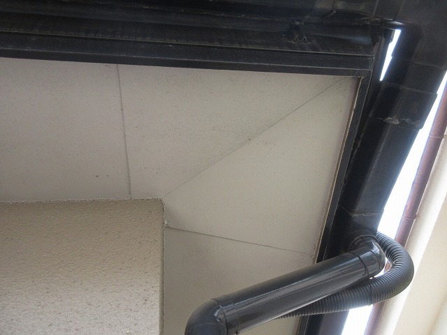 軒天:塩ビ被覆の剝がれ、汚れの付着