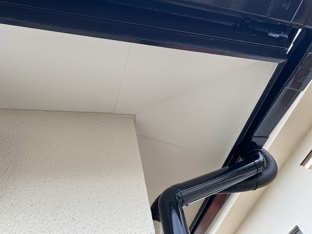 軒天は、アレスセラマイルド(19-90A)を使用し塗装いたしました。アレスセラマイルドは、防カビ、防藻性に優れ、ヤニ、シミ、アク止めの効果があります。