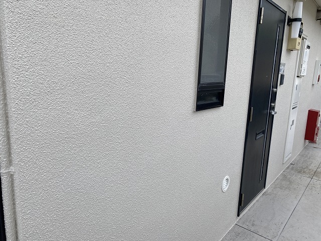 外壁の下地の割れや、欠損などの補修を行い、外壁は、関西ペイントのアレスダイナミックTOP(KP-120)を使用し塗装いたしました。アレスダイナミックTOPは、外壁の劣化を抑制するラジカル制御形塗料です。4つの技術で紫外線から外壁を長期的に守ります。