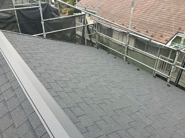 屋根は、カバー工法にて改修工事を行いました。カバー工法とは、現状の屋根材の上から新しい屋根をかぶせる工法です。