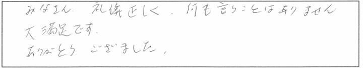 みなさん礼儀正しく、何も言うことはありません。大満足です。ありがとうございました。